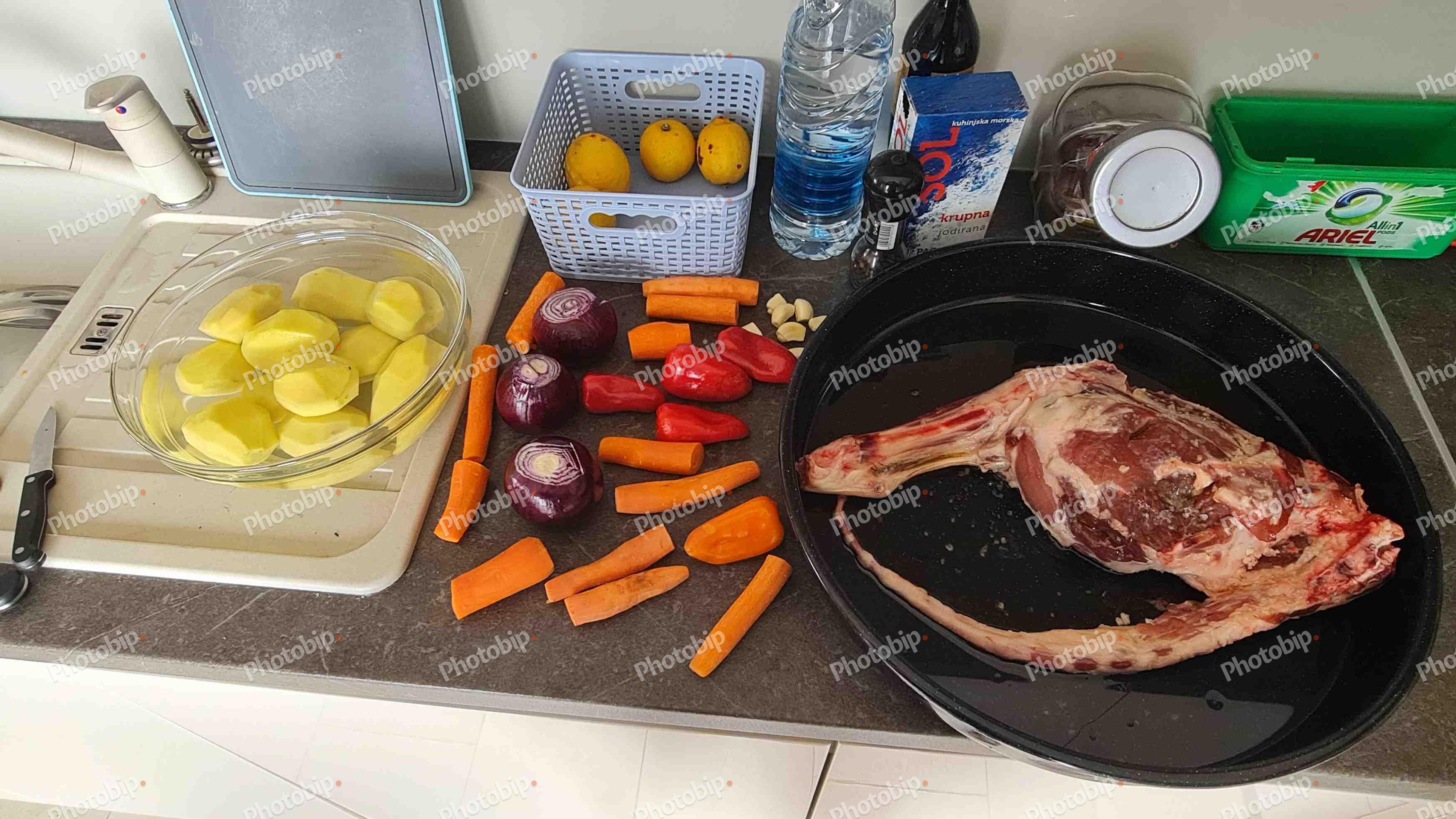 Priprema janjetine i povrća za peku