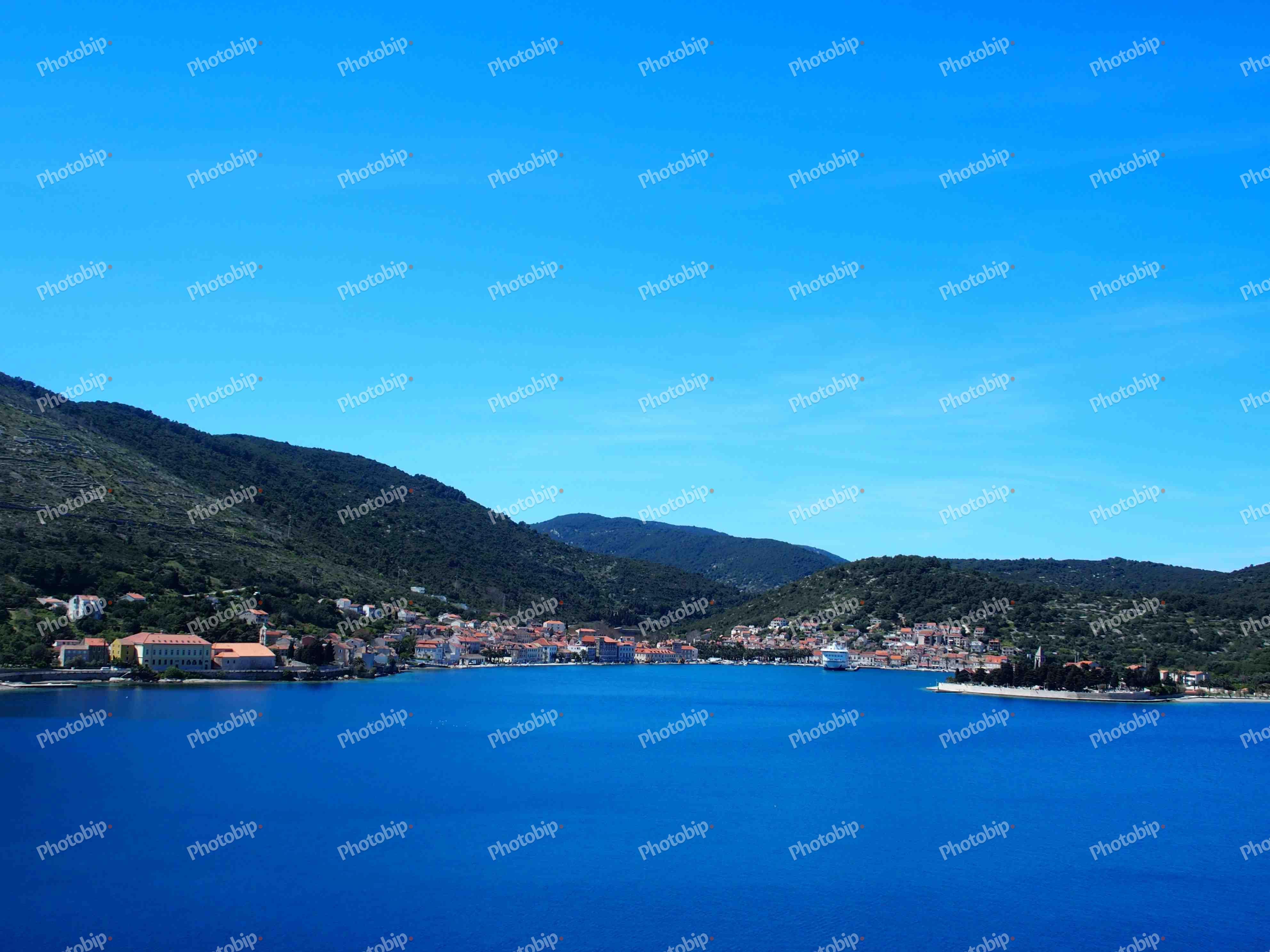 Mali primorski gradić fotografiran sa drugog dijela otoka
