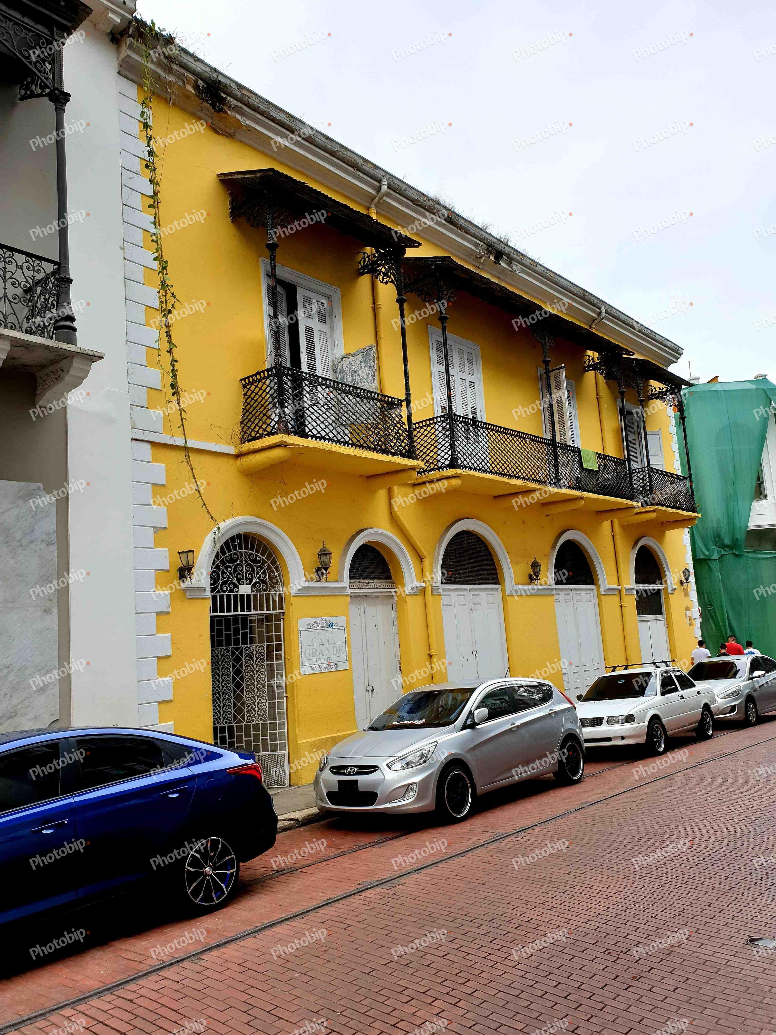 Žuta građevina s automobilima ispred