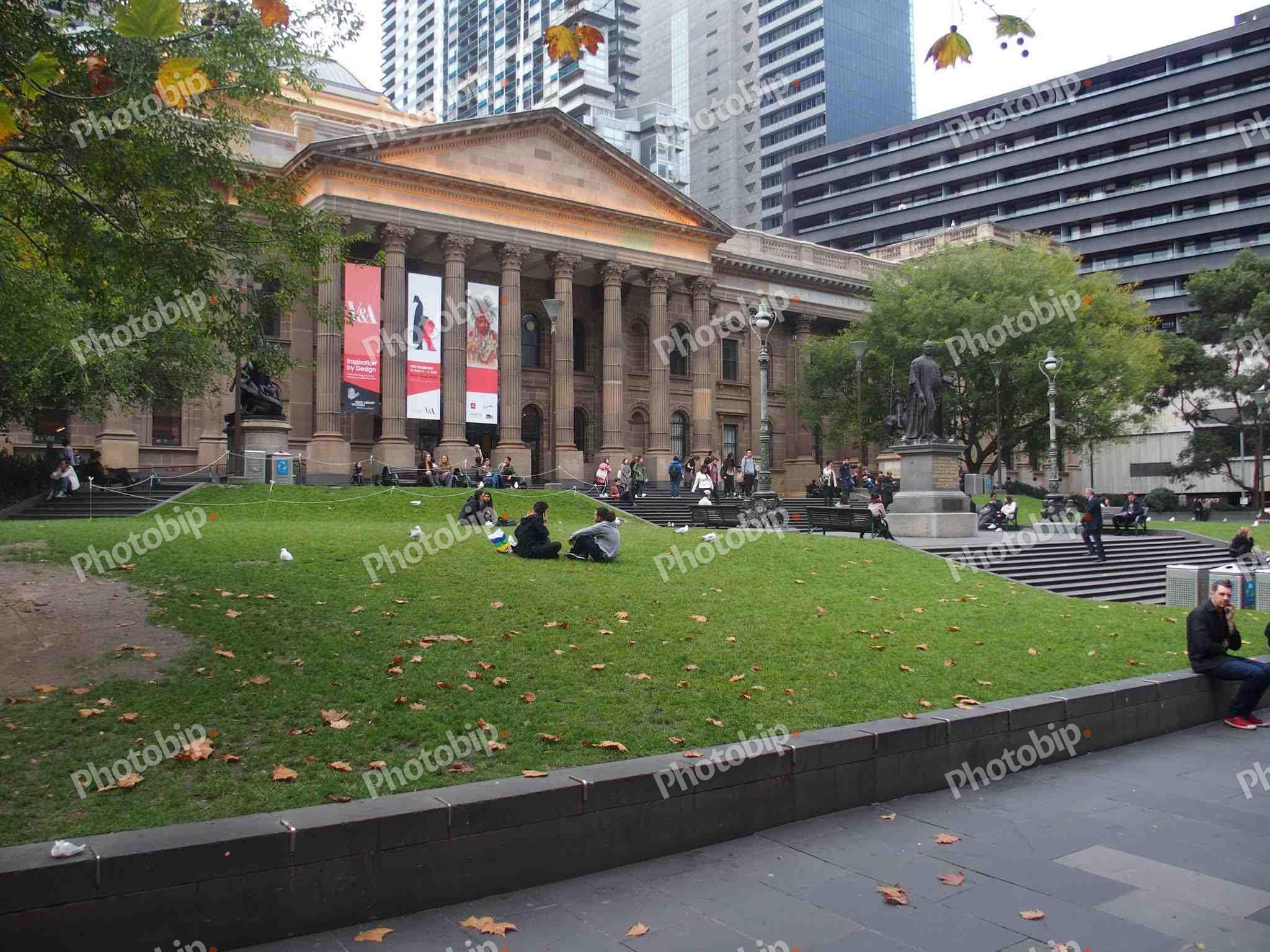 Mladež se odmora pokraj povijesne znamenitosti State Library Victoria u Melbourneu, Australija