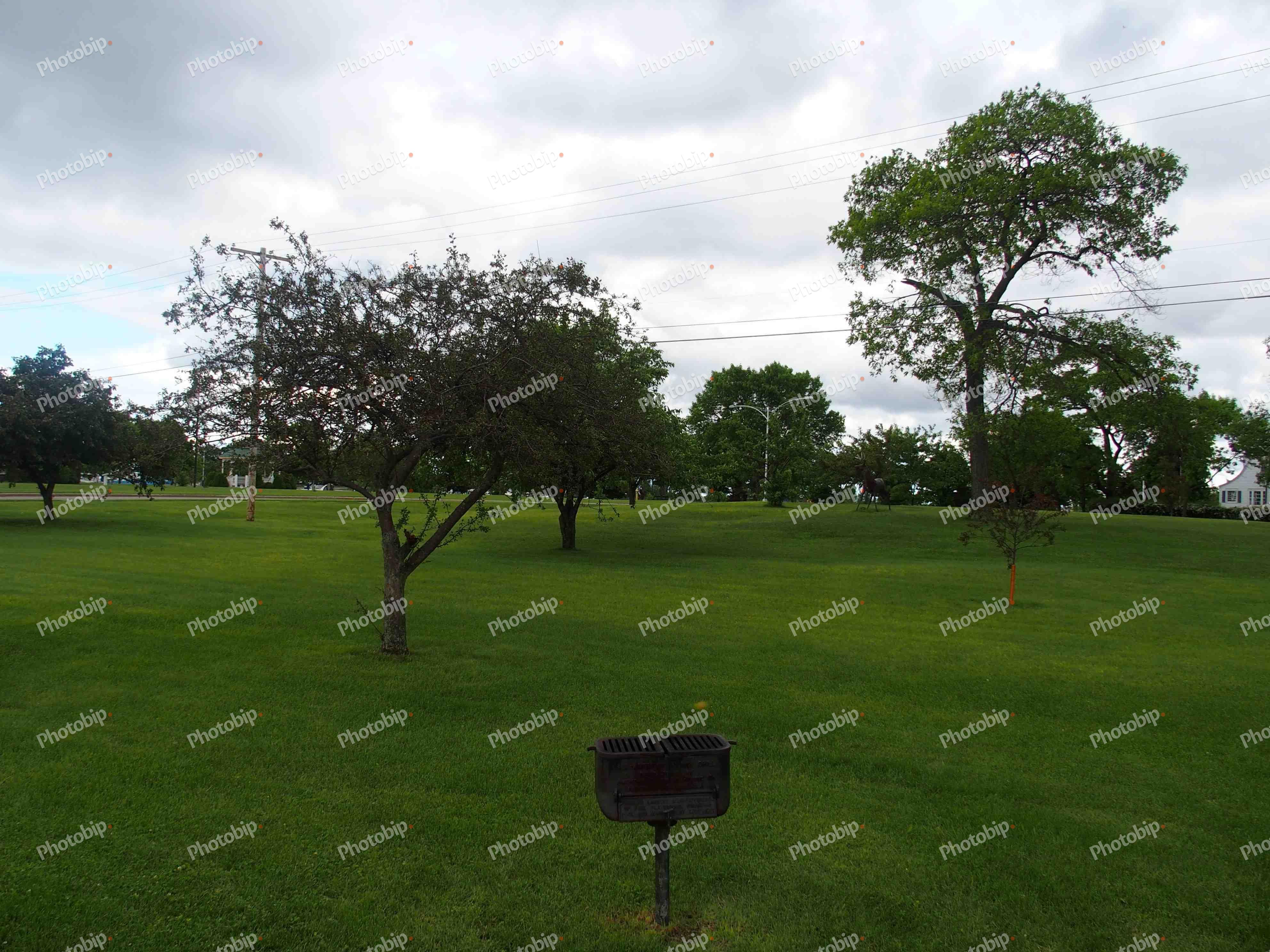 Trava i drveće ispod oblačnog neba.