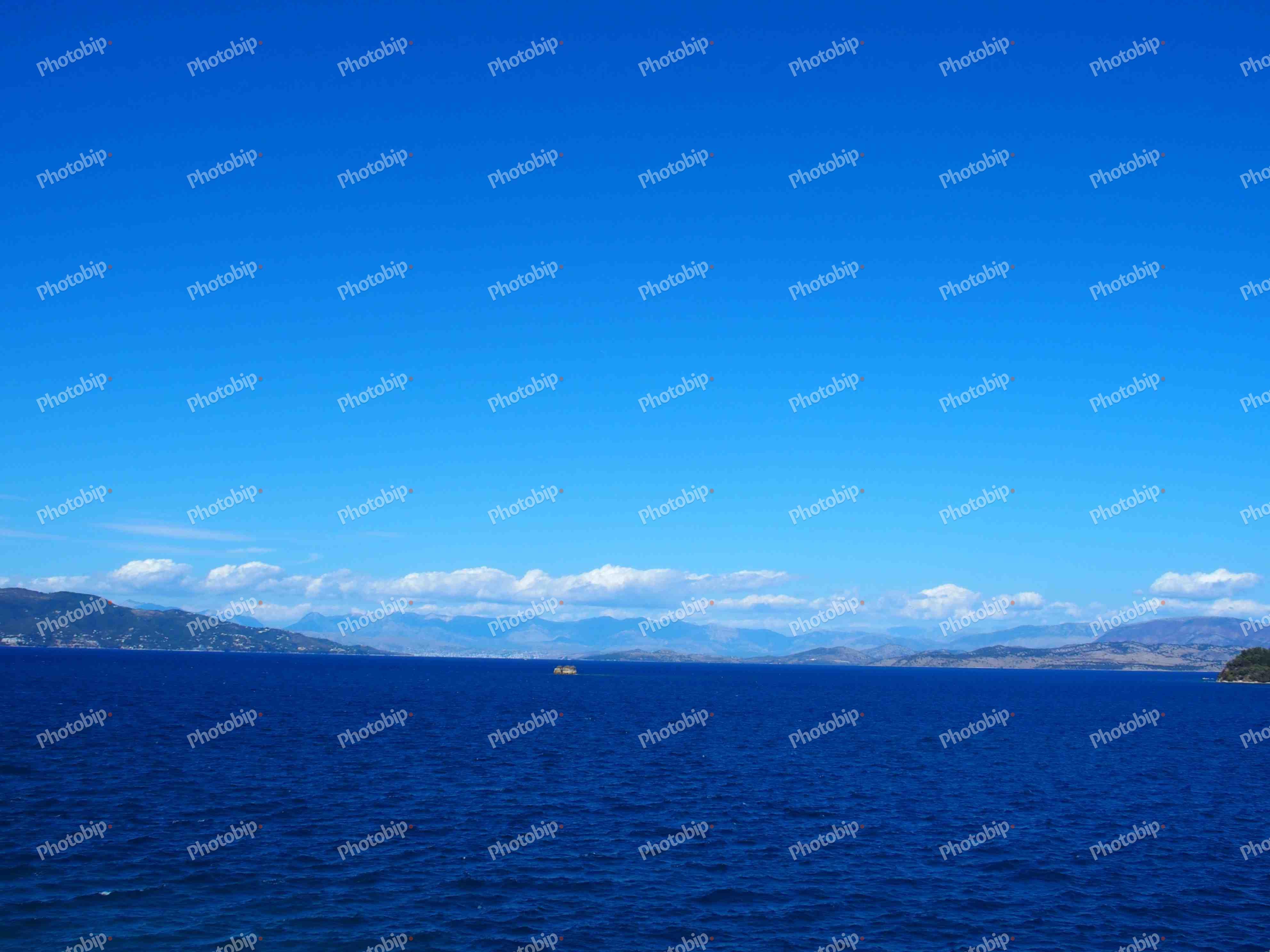 Uzburkano plavo more i kopno u pozadini.