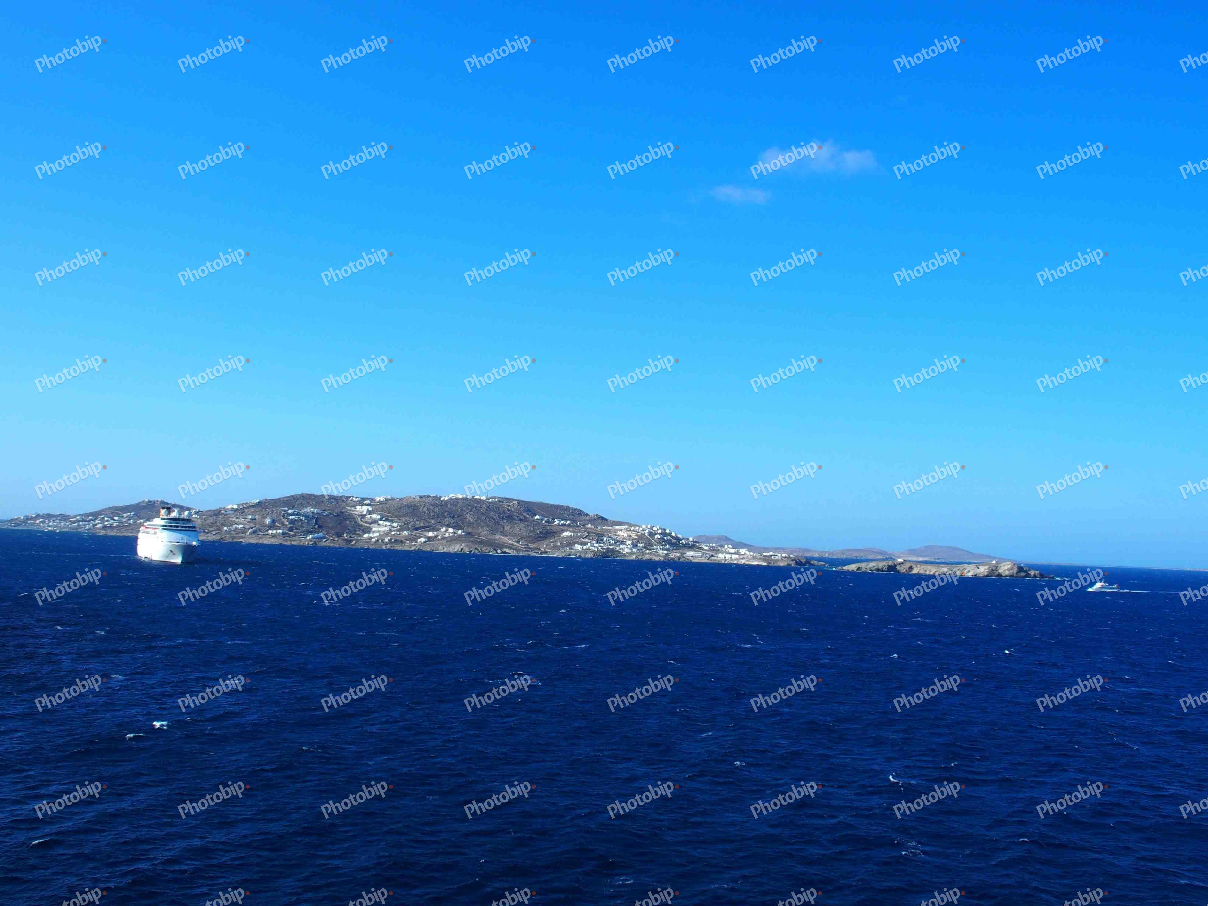 Brod plovi morem i kopno u pozadini.