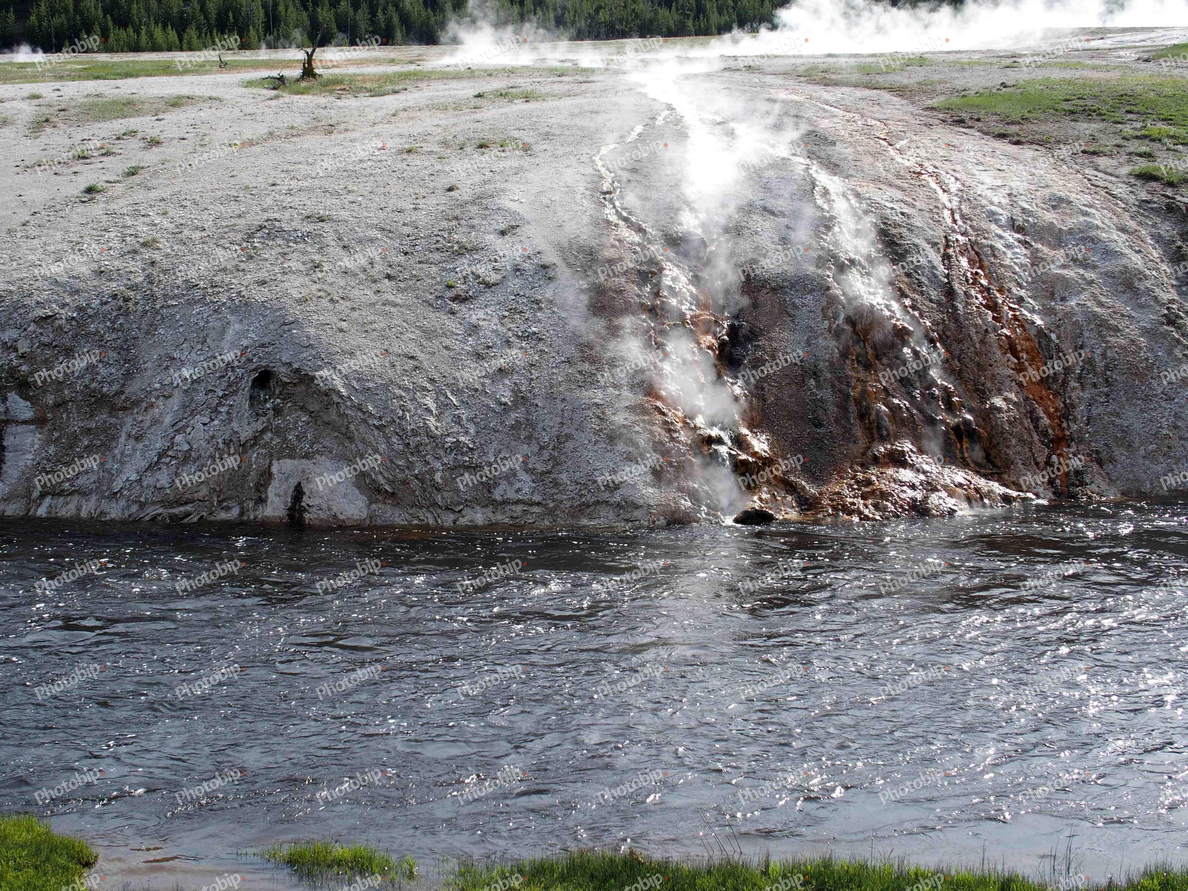 Pogled na gejzir na obali rijeke