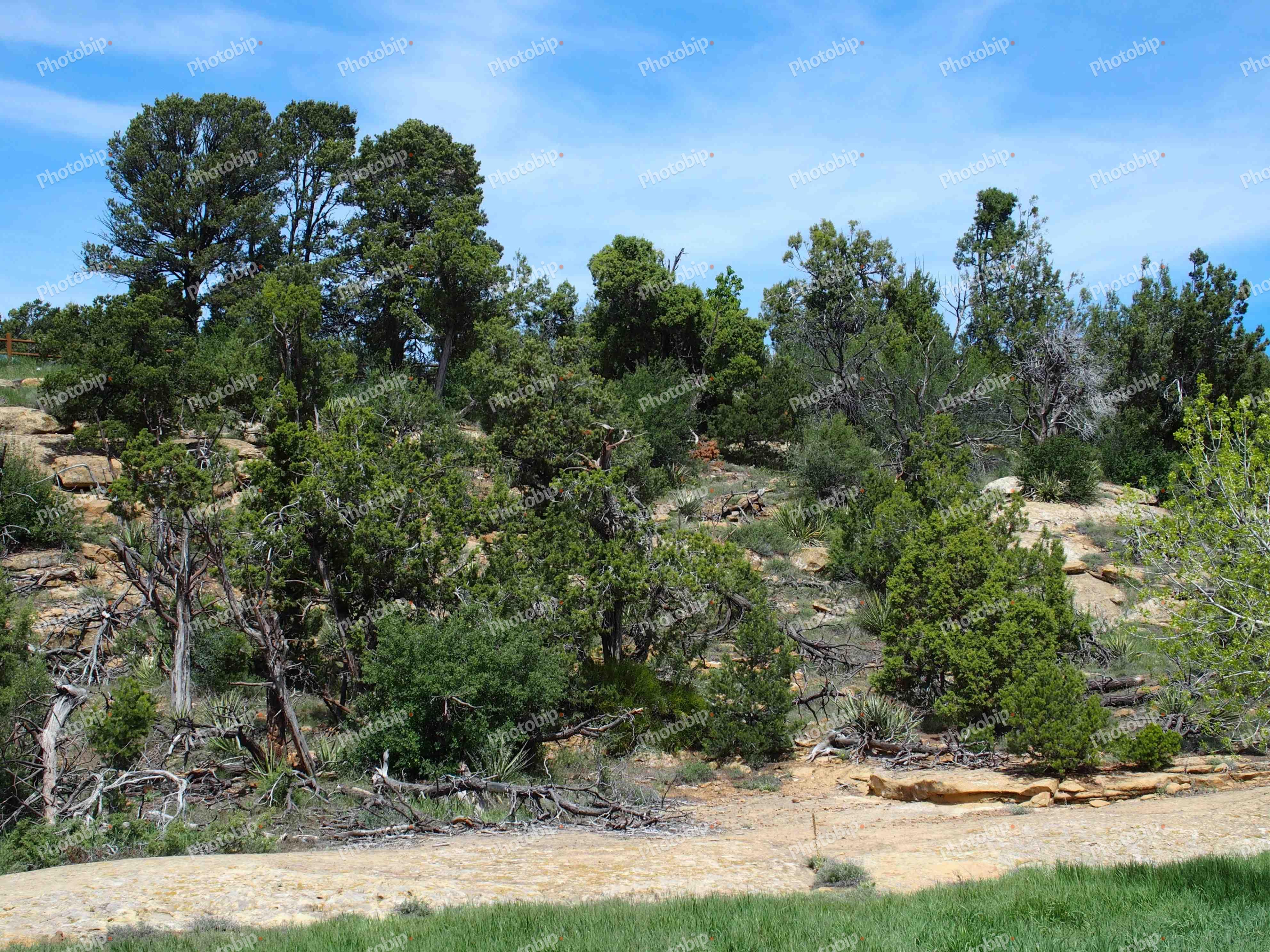 Raznolika vegetacija ispod plavog neba.