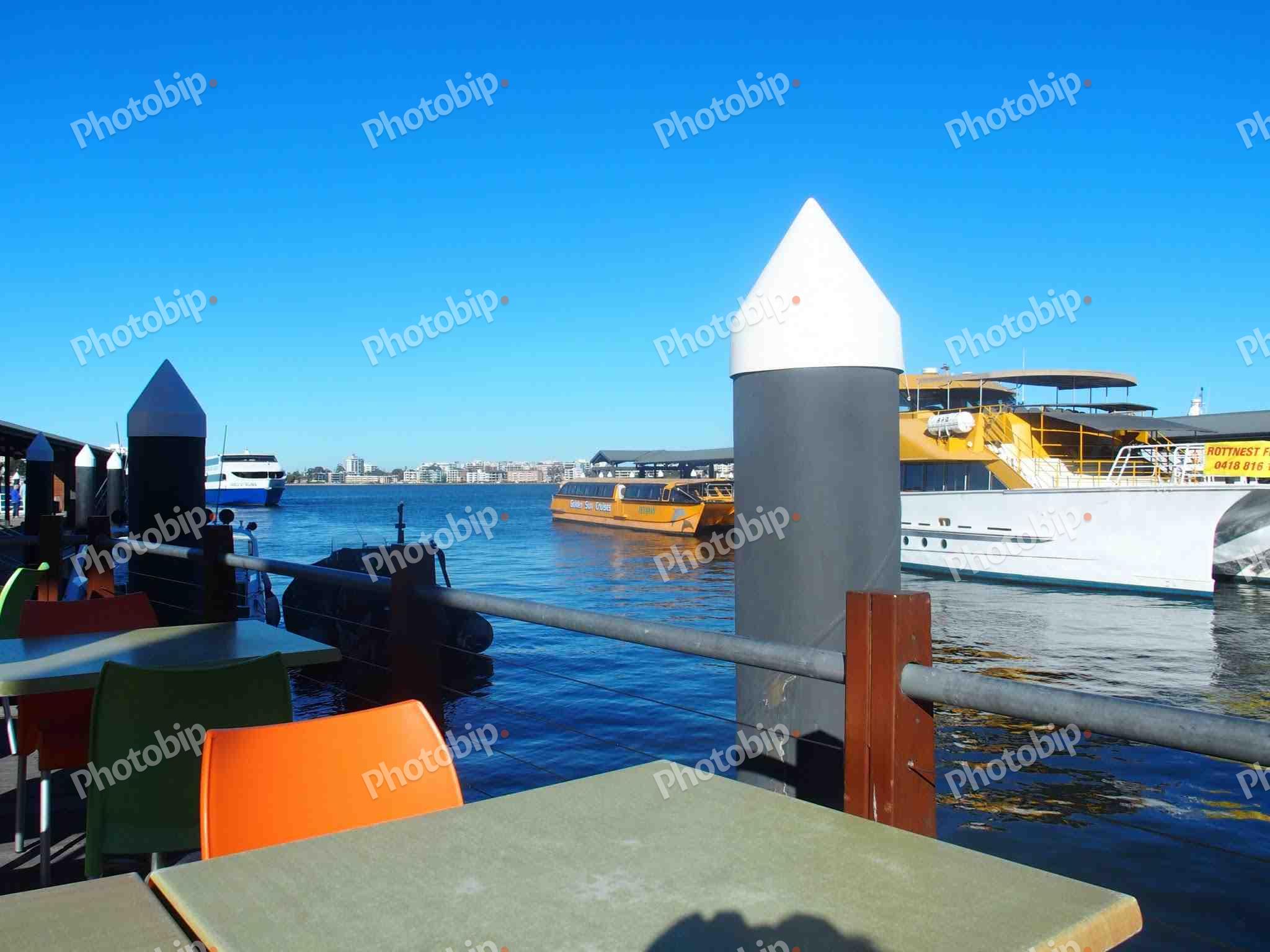 Plovila i grad u pozadini.