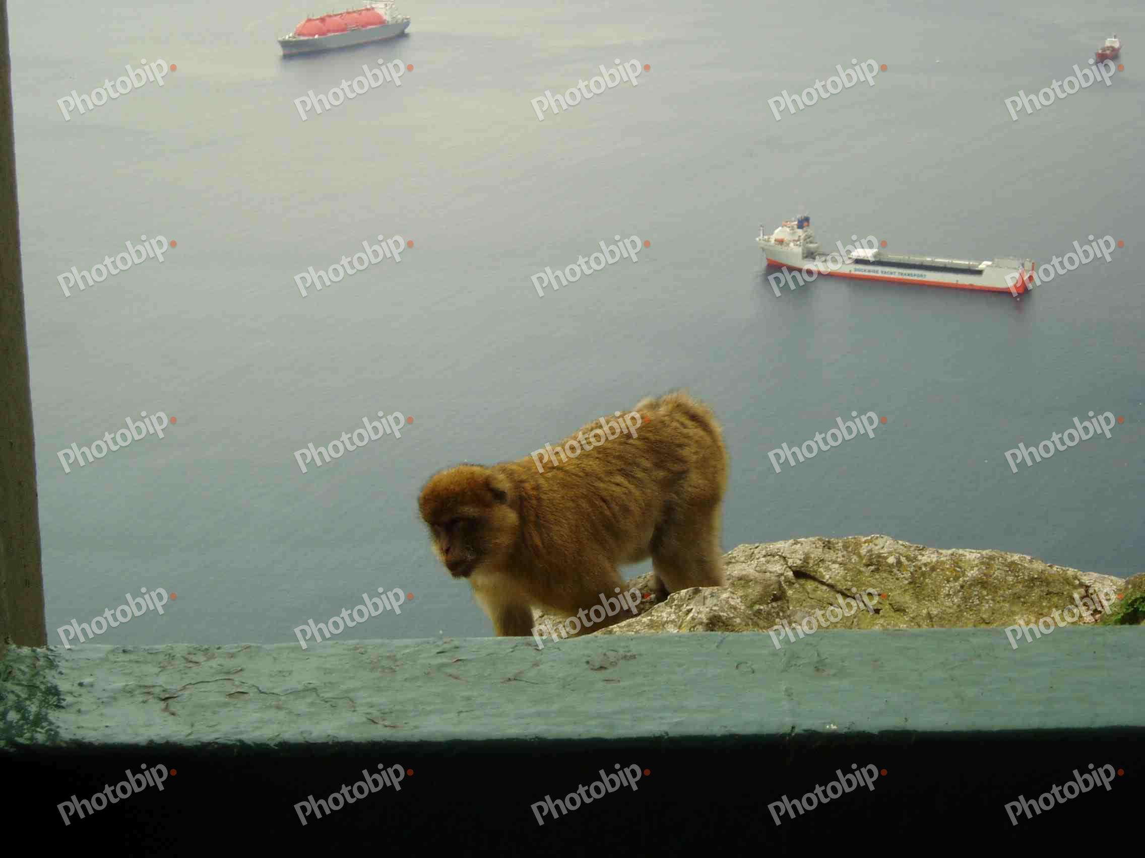 Majmun i plovila u pozadini.