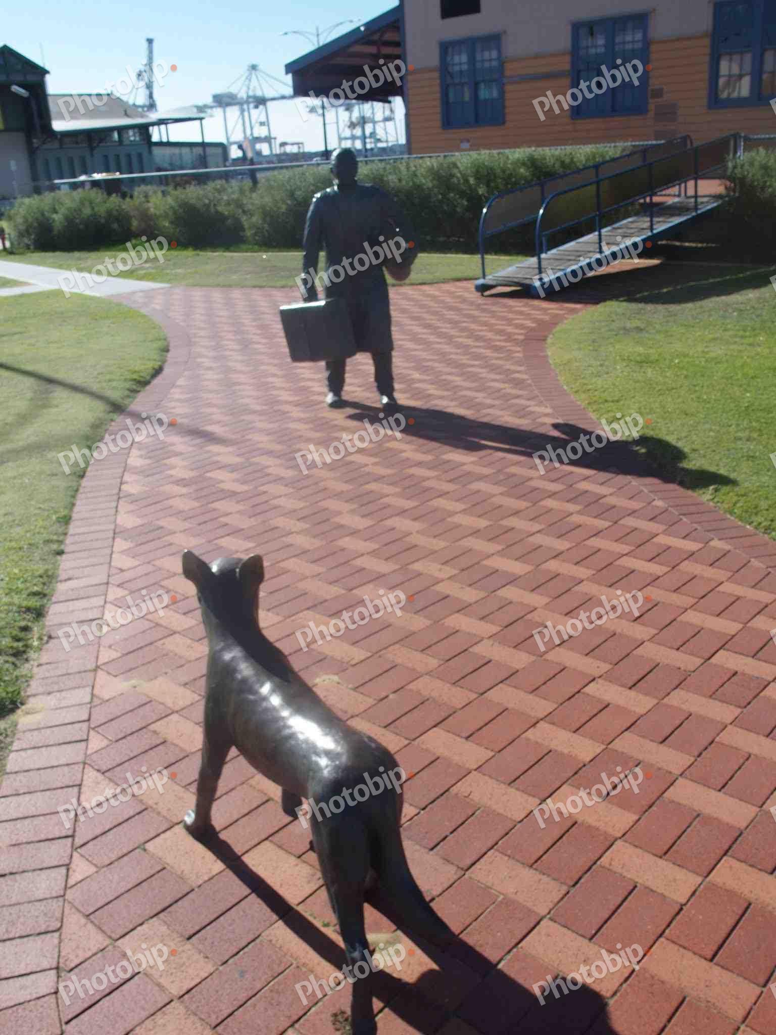 Skulptura psa i čovjeka.