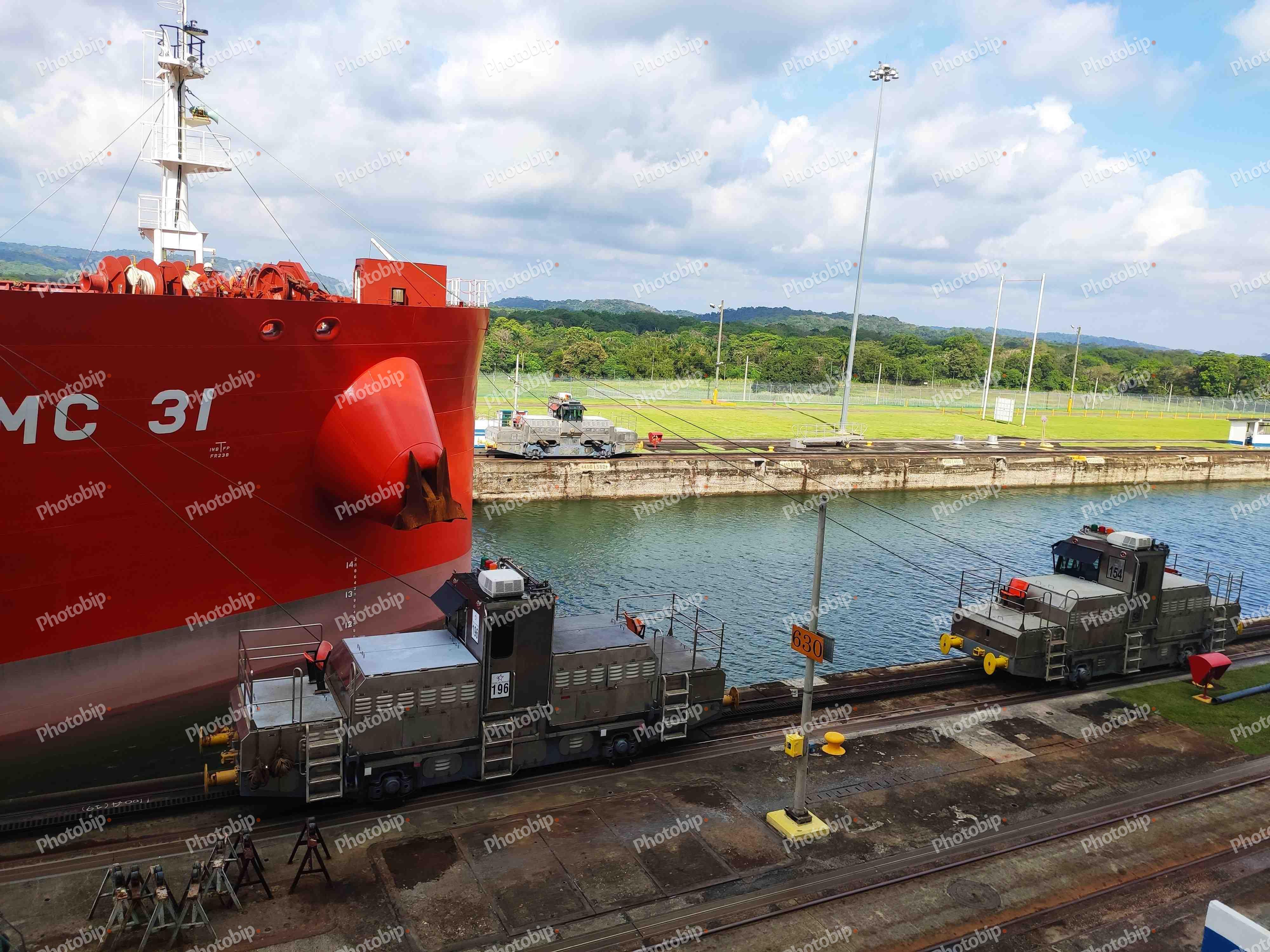 Crveni brod u Panamskom kanalu