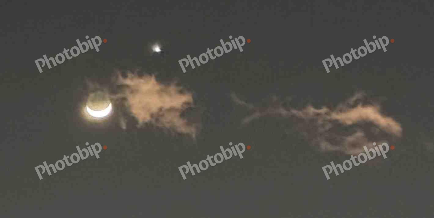 Fotografija prikazuje konjunkciju Mjeseca i Venere, nebeski događaj kada se dva objekta pojavljuju blizu jedan drugome na nebu, gledano sa Zemlje.