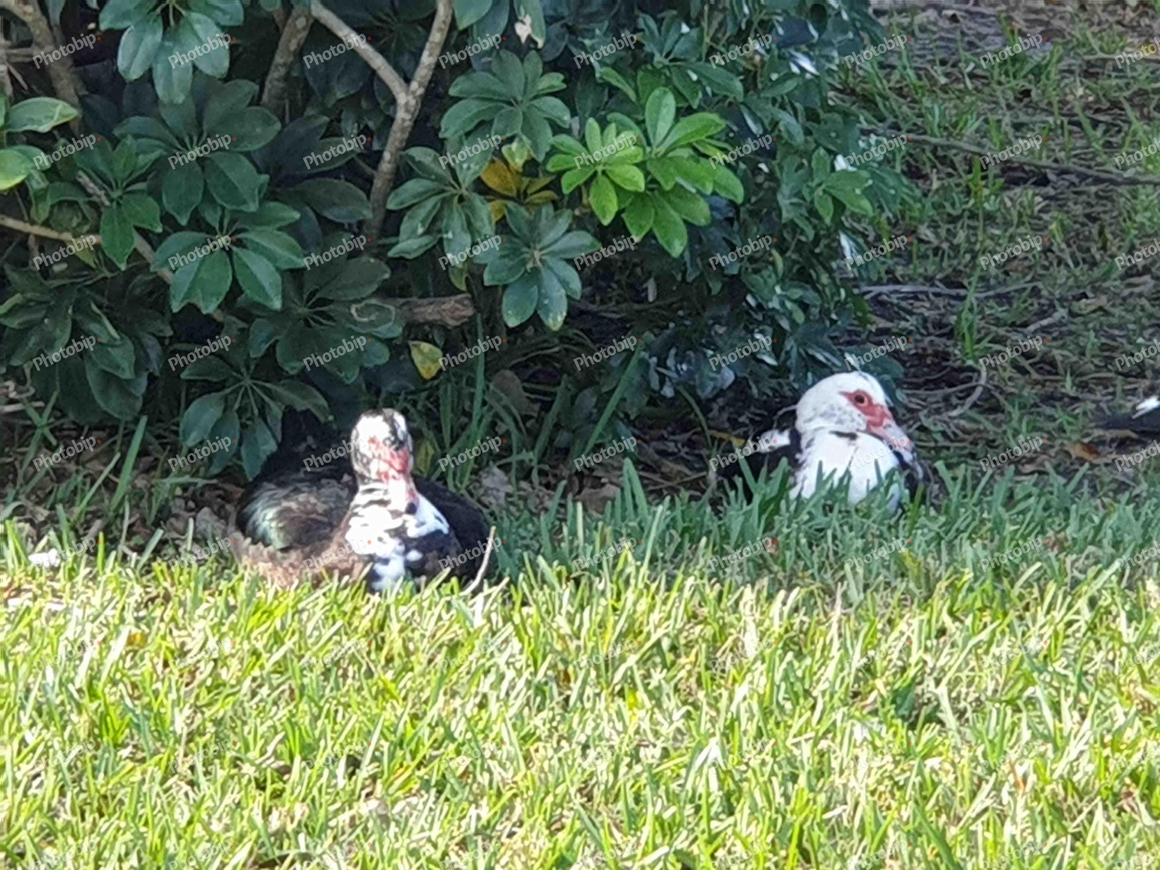 Dvije mošusne patke leže u travi